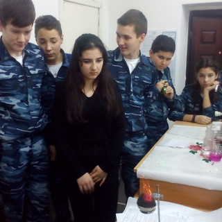 В конце декабря ученики 8 Б класса провели занимательные химические опыты для учащихся 5, 6 и 7 кадетских классов. Восьмиклассники приготовили интересные опыты, показали различные «чудеса». Данное мероприятие организовано в рамках проходившей недели естественных наук с целью повышения познавательной активности учащихся к химии. А также воспитания соблюдения правил техники безопасности на примере выполнения демонстрационных опытов. Все опыты удались на славу. Ребята получили удовольствие и заинтересовались сложной наукой химией
